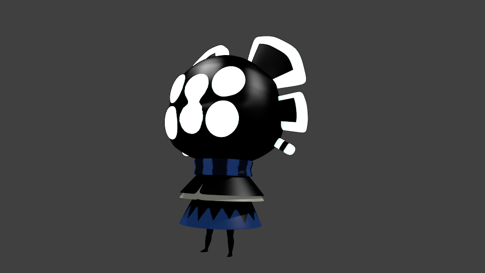 スカート部分はメニューからフタなし円柱メッシュを追加し、ぐりぐり形をいじってそれっぽく仕上げ、マフラー部分はメニューからドーナツメッシュを追加し、ひしゃげさせました。